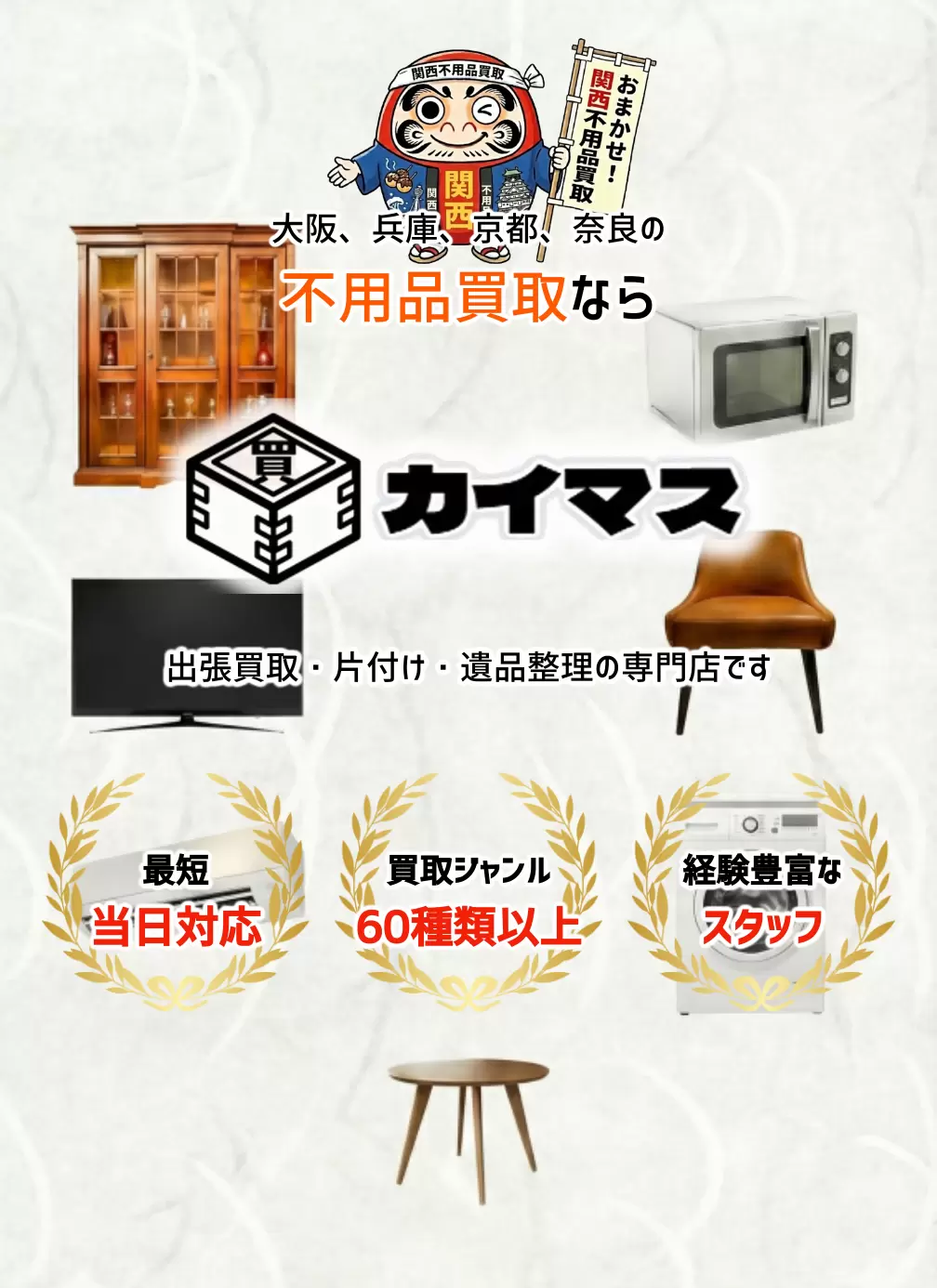 当社では、産業廃棄物収集運搬業許可証および古物商許可証を保有した専門スタッフが査定を行います。法令を遵守し、正確で公平な判断を徹底しているため、初めての方でも安心してご依頼いただけます。適切な知識と経験に基づき、お客様の大切な品を丁寧に評価し、高価格でのご提案をお約束します。